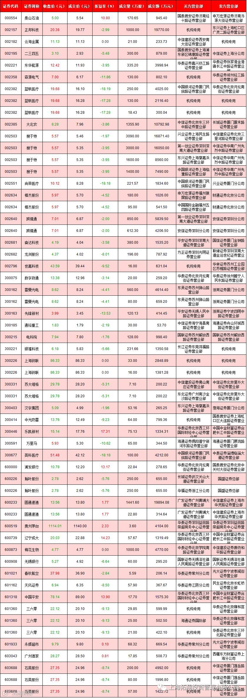 I 每日大宗交易数据统计