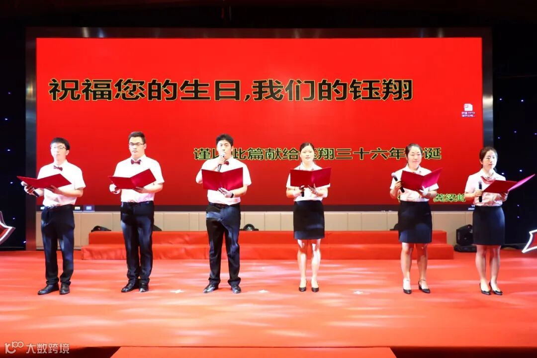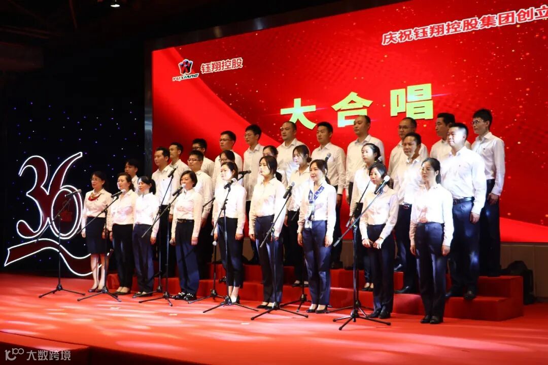 活动尾声,钰翔合唱队现场演唱了《祝你生日快乐》、《我和我的祖国》两首歌曲,最后集团领导登台与合唱队一起合唱《相亲相爱的一家人》,带领全场员工起立互动,将整个庆典活动推到高潮。