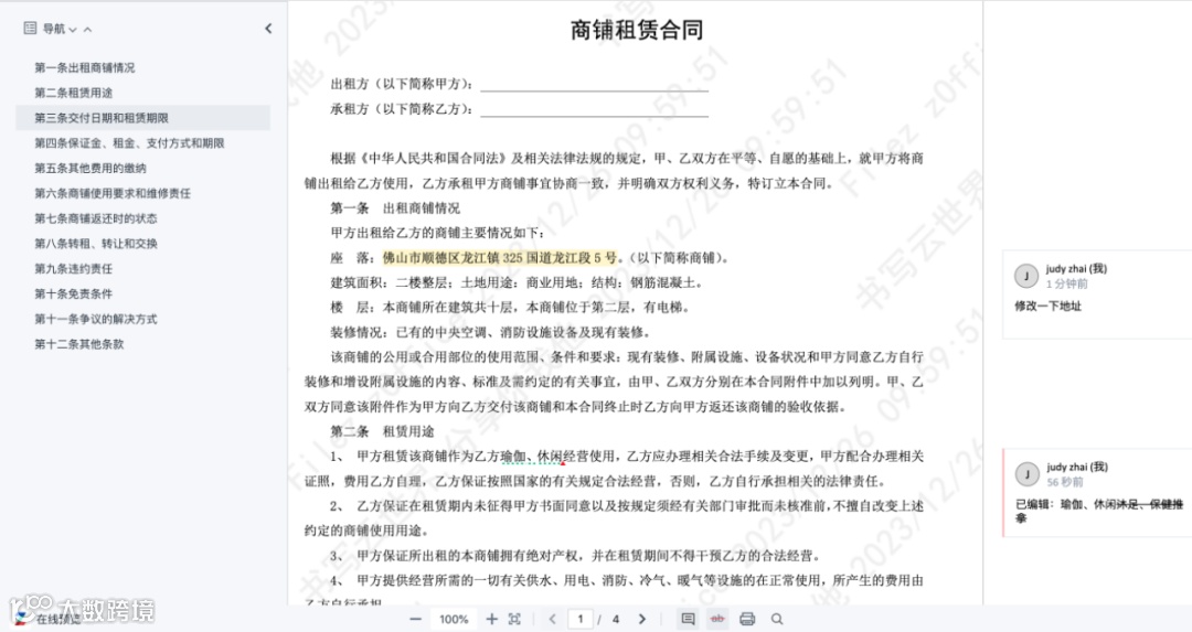 在审阅场景下,用户无需下载文档,也无需通过编辑界面,即可查看文档中的批注和修订记录,既保护了文档内容,也满足了审阅需要。