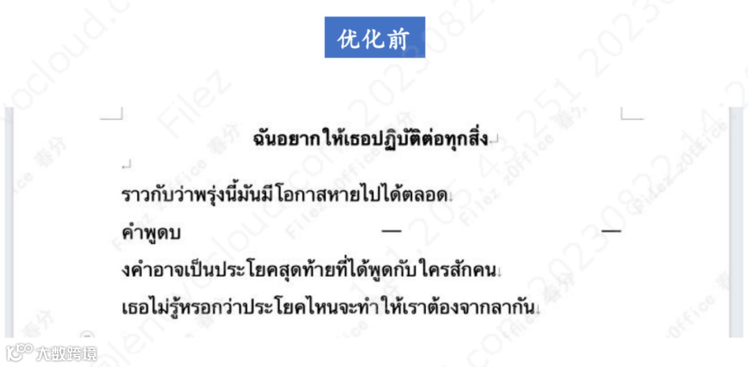 Filez文档中台-集成版优化了泰语文字文档排版出现的相关问题,使文档排版更加符合泰语使用规则与阅读习惯,增强了文档排版的美观性和实用性,更加符合客户海外业务场景需求。