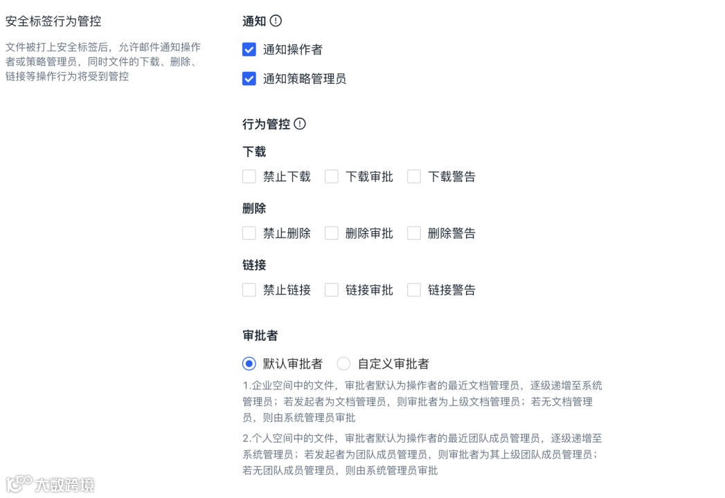 Filez的安全标签,可以根据业务需求,形成企业专有的敏感内容分级分类防护体系,不同的分级或分类用不同颜色的安全标记进行区分,并采用不同安全防护要求进行管控,防止内容的泄露。