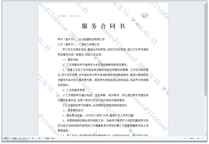 除了对文件设置权限外,我们还可以对文件设置预览水印。在编辑预览的过程中,全程有水印保护,可以有效地防止编辑内容被截图外泄。当下载的文件被打上水印,既能标识文件所属企业或人员信息,提高访问者的版权意识;又能记录分享者和访问者的信息,方便后续定位追踪分享过程的行为人,如果发现文件最终还是被带出去了,我们可以通过终端记录的访问者信息来快速锁定“嫌疑人”。水印保护功能,可以确保文档截图可追溯,避免时刻担心员工外泄资料,对于重要的合同文件,嵌入企业水印,确保合同防泄密。