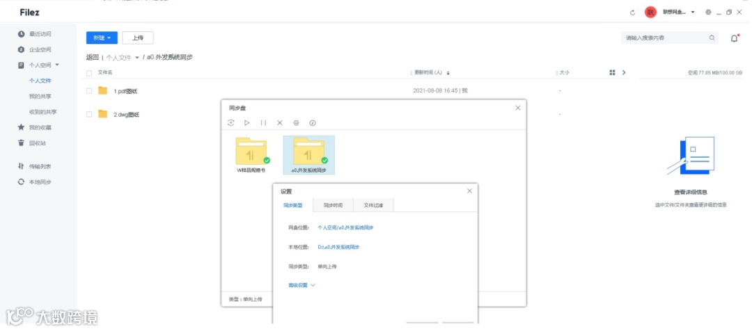 • 在Filez上设置图纸同步目录,图纸自动解密同步上传;