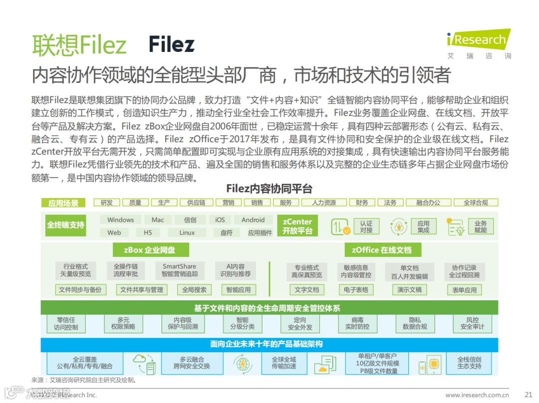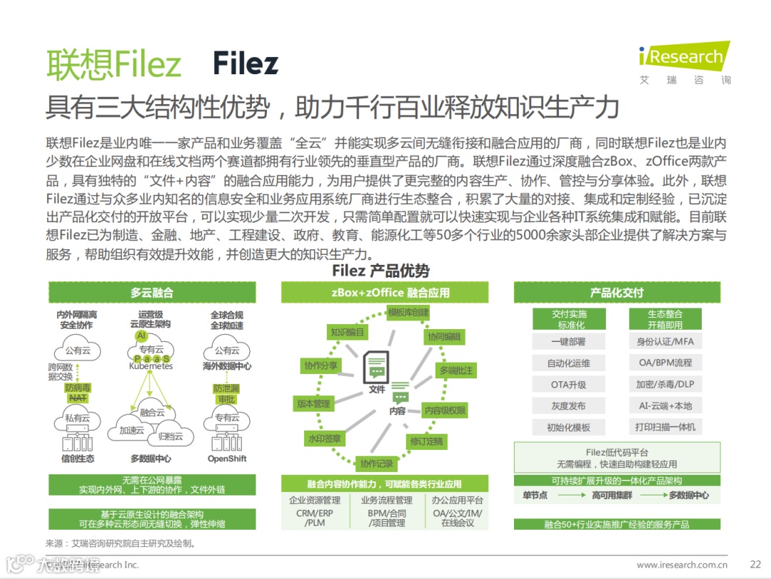 以下是,艾瑞报告对联想Filez的产品能力的分析与竞争优势的理解: