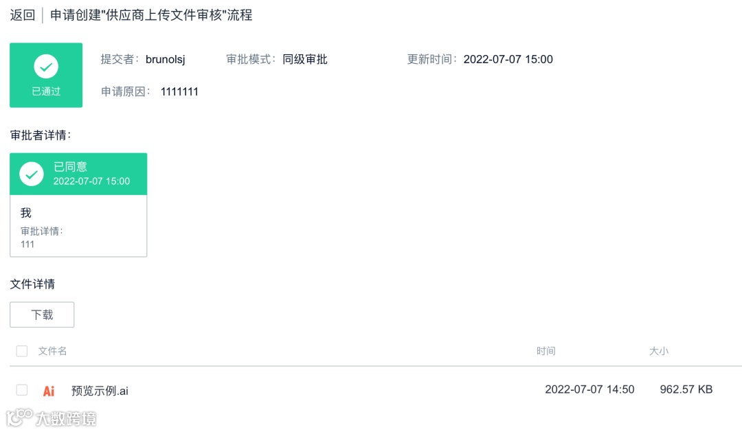 设置完需要审批的文件后就可以在我的审批中查看需要审批的链接,不论是文档资料,专业格式文件都可以预览下载并完成审批。