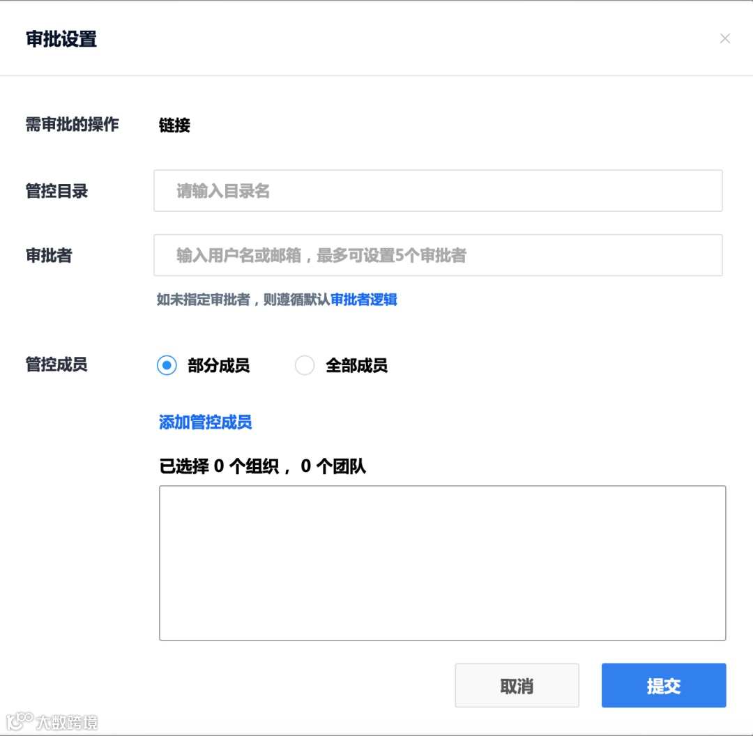 可以设置审批链接中的目录名,设置审批者,和设置管控成员。