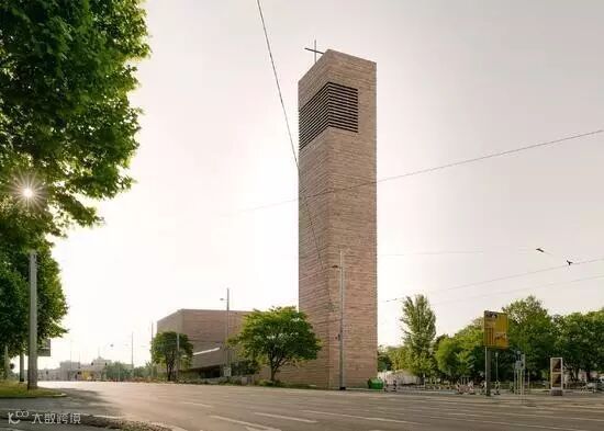 整个场地呈三角状,除钟楼外,还包括教堂本身的低平建筑和一个大型中央庭院。