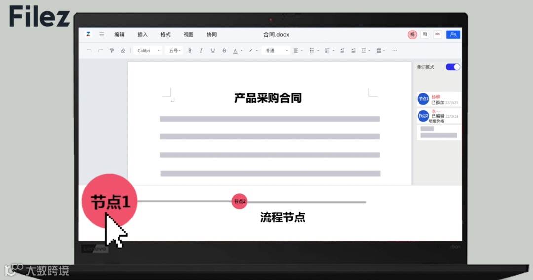 效率问题。拟制合同只能串行,同一个合同不能被多人协同编辑。合同多次上传下载,效率低下,甚至严重影响合同进度和业务推进。