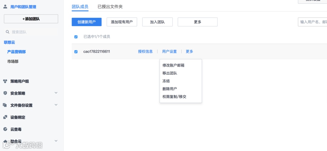可以点击更多修改账户密码、移出团队、冻结账户、删除用户、权限复制/移交。这样员工离入职可以真正做到安全快捷,不会造成公司信息泄密等问题。