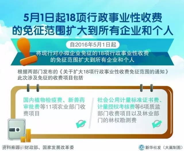 4月28日,财政部网站发布《关于扩大18项行政事业性收费免征范围的通知》:自5月1日起,扩大18项行政事业性收费免征范围。