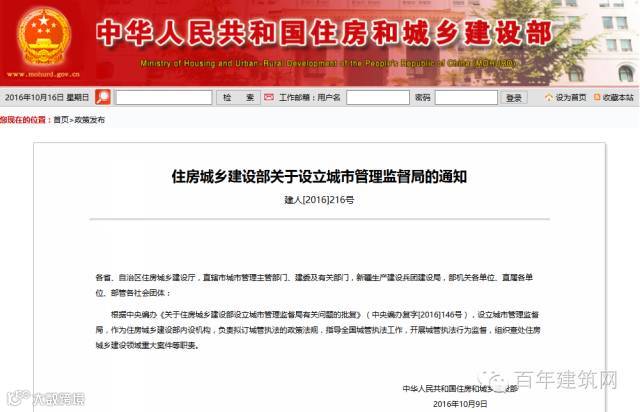 根据中央编办《关于住房城乡建设部设立城市管理监督局有关问题的批复》(中央编办复字[2016]146号),设立城市管理监督局,作为住房城乡建设部内设机构,负责拟订城管执法的政策法规,指导全国城管执法工作,开展城管执法行为监督,组织查处住房城乡建设领域重大案件等职责。