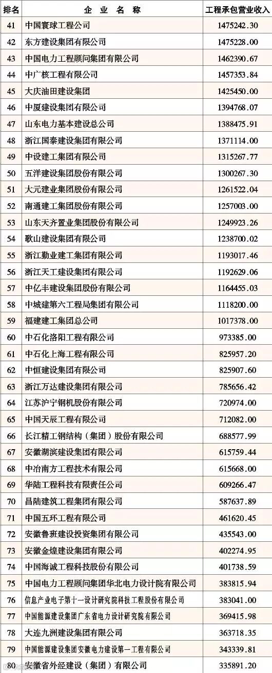导读:(以2014年工程承包营业收入为依据)(单位:万元)