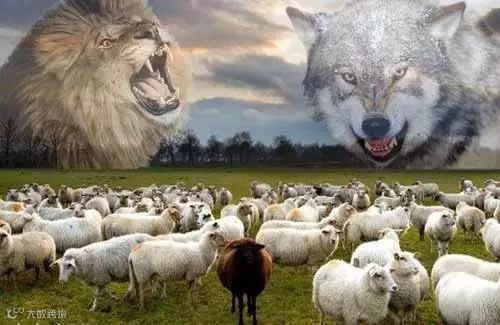 上帝把两群羊放在草原上,一群在南,一群在北。上帝还给羊群找了两种天敌,一种是狮子,一种是狼。上帝对羊群说:“你们要狼,就给一只,任它随意咬你们。如果你们要狮子,就给两头,你们可以在两头狮子中任选一头,还可以随时更换。”
