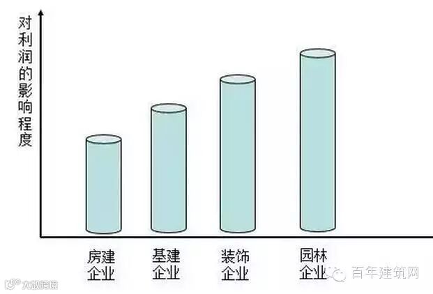 建筑业整体的产值利润率约为3.5%,几个细分的行业中,房建约为3.2%,基建约为3.7%,建筑装饰和建筑安装业约为4.5-5%,园林业的产值利润率则远高于5%。整体而言,建筑细分行业中,产值利润率越低的行业,“营改增”后受到的影响越小,而行业产值利润率越高的行业,“营改增”后受到的影响就越大。