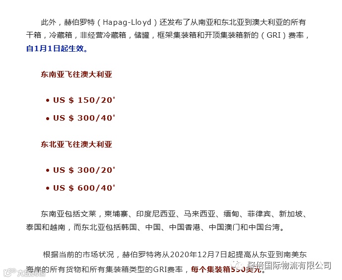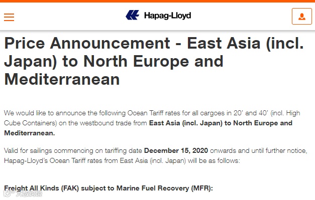 缺箱、拥堵、持续高企的运价接下来一段时间仍是主旋律。亚洲集装箱短缺推高了运输成本,缺柜是最大的干扰因素,所有的空箱子都到哪里去了?DHL全球货运欧洲负责人Markus Panhauser表示,中欧铁路运输能力也接近满负荷,中欧班列也遭遇延误,运力受到挤压,“看好卡车陆运”。2020年进入年末,各大船公司再发2021年涨价通知,涨幅刷出新高度!