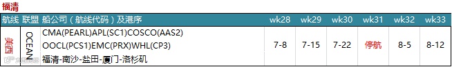 挂靠厦门港的航线中,共停航8条,美西航线有1条停航,地中海航线有7条停航。