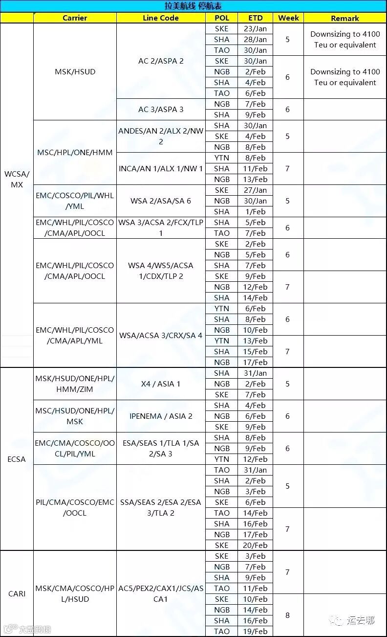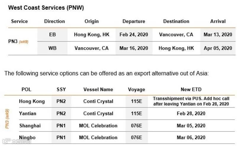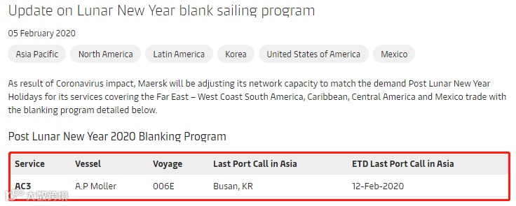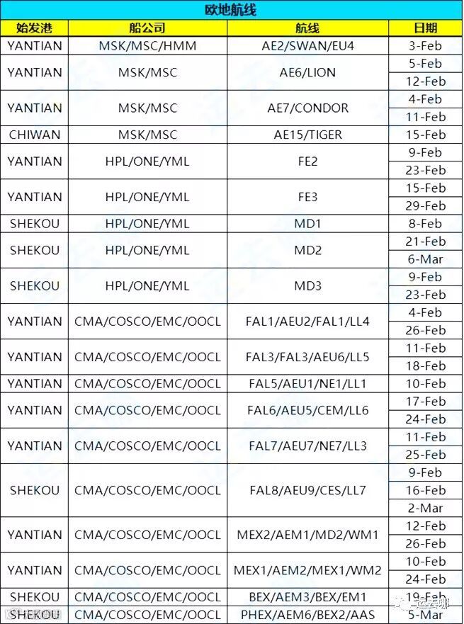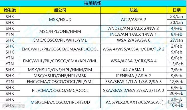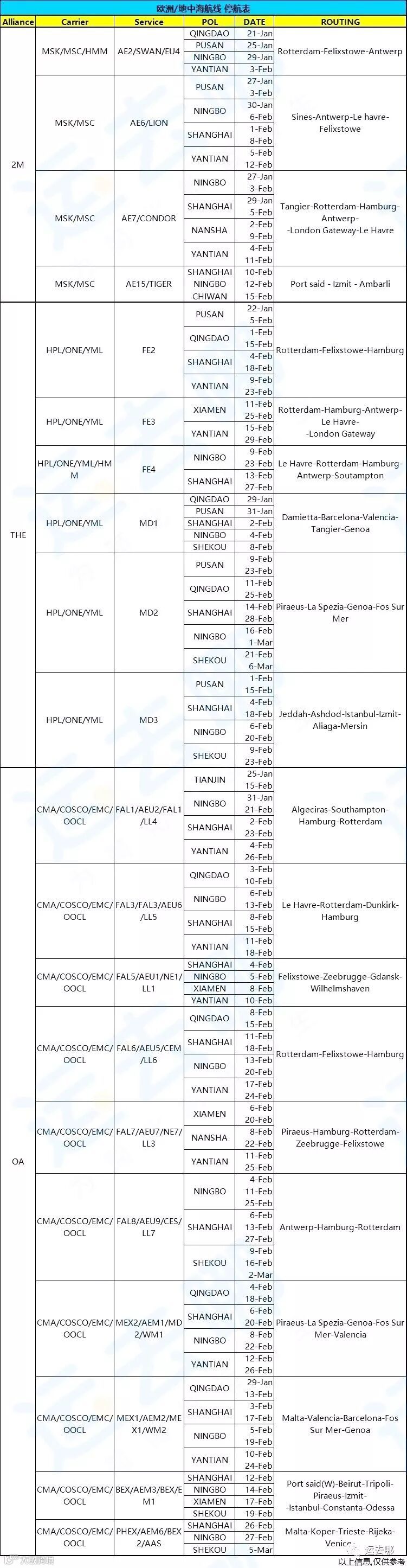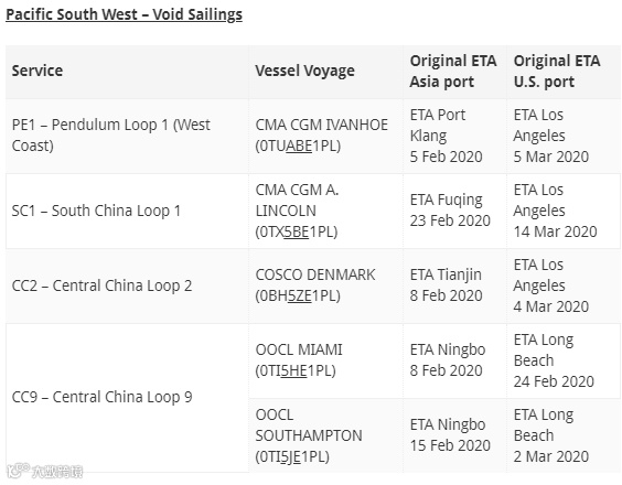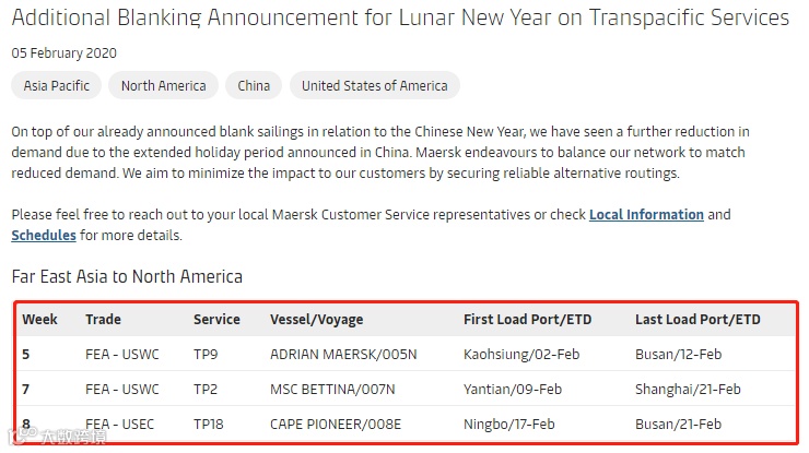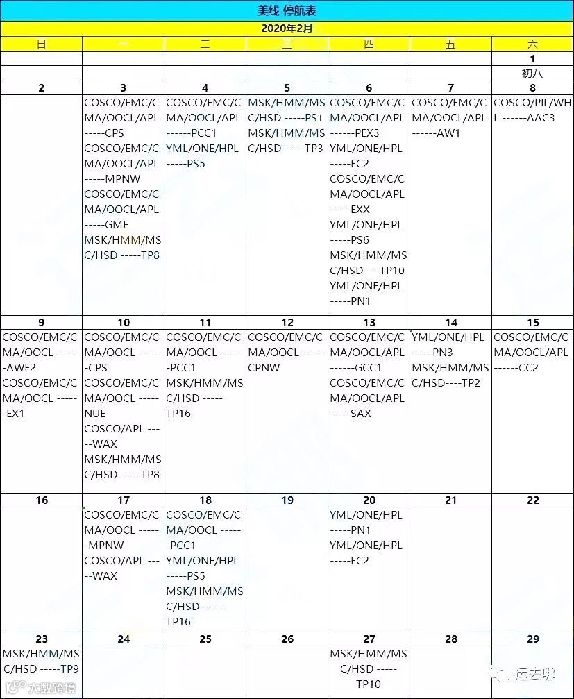 受春节以及其他原因影响,各大船公司发布最新停航通知,整理如下:
