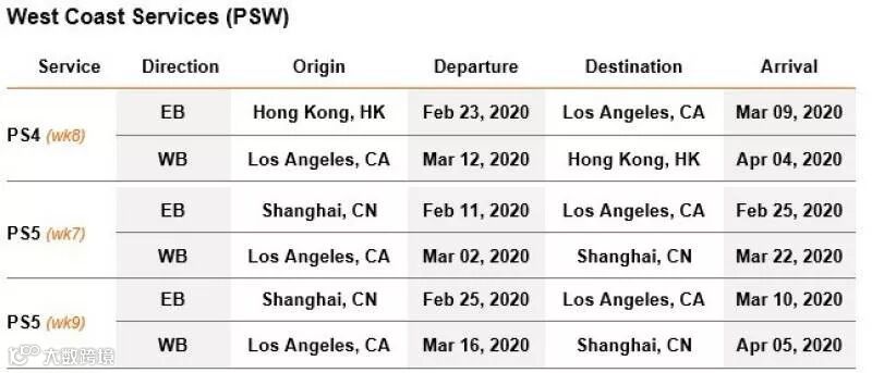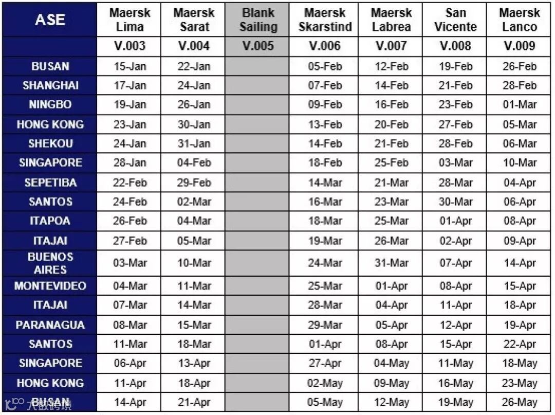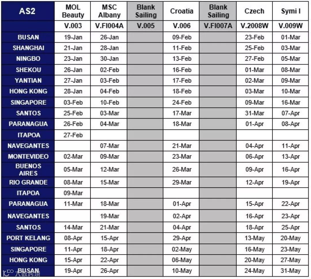 亚洲-南美洲东海岸服务(ASE & AS2)受影响航行计划: