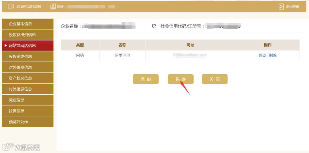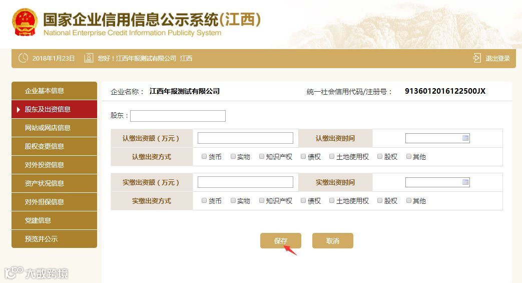 点击左边的“对外投资信息”,之后再根据实际情况填写完点击“保存”。