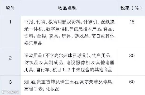 (注:税目3所列商品的具体范围与消费税征收范围一致。)