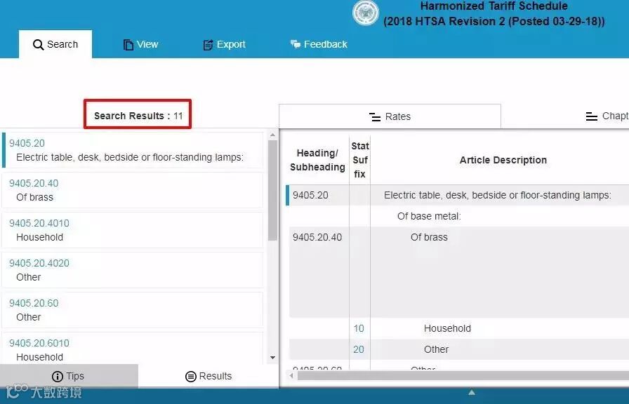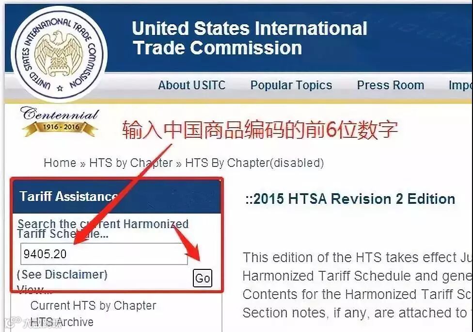 1.查询HTS CODE:进入上述网站,在Tariff Assistance项下Search the current Harmonized Tariff Schedule...下的搜索框中输入输入中国HS CODE的前六位数,搜索结果页面的左边框有详细的HTS CODE,根据自己的产品选择HTS CODE。
