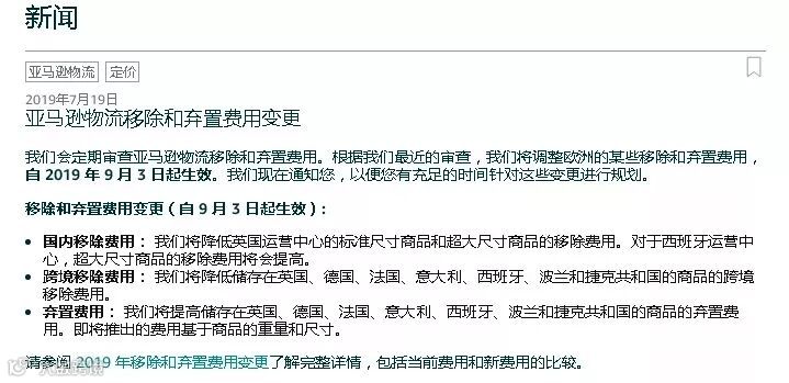据了解,9月3日起,亚马逊将调整FBA移除和弃置费用,此次费用调整主要针对欧洲站卖家。据悉,此次调整主要从两个方面影响卖家,首先是跨境移除费用变得更便宜了,其次是弃置大尺寸商品将更加昂贵。