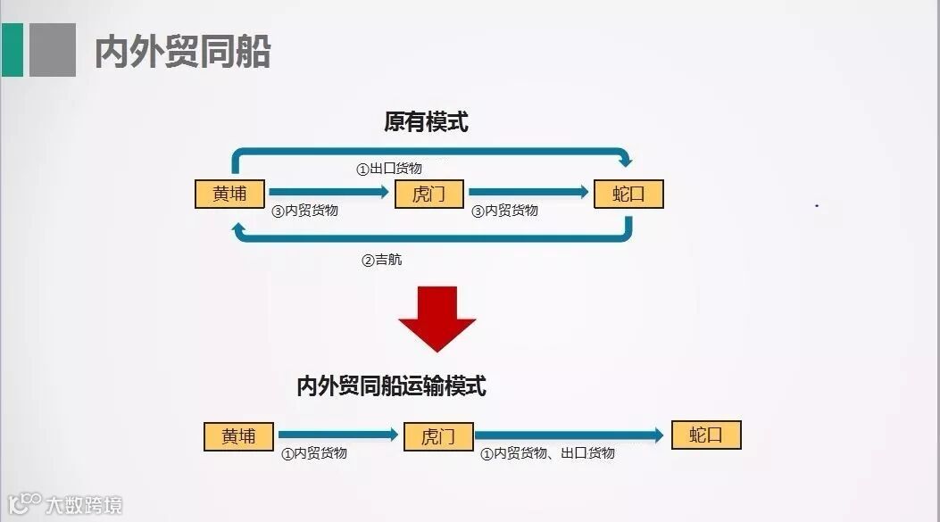内外贸同船运输是指经海关核准备案的监管船舶,在内贸状态下同时承载内贸和外贸集装箱货物的运输。