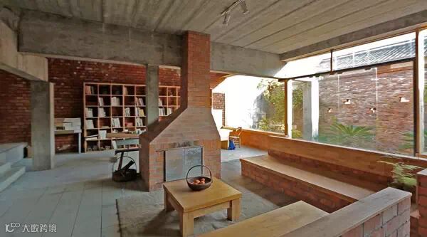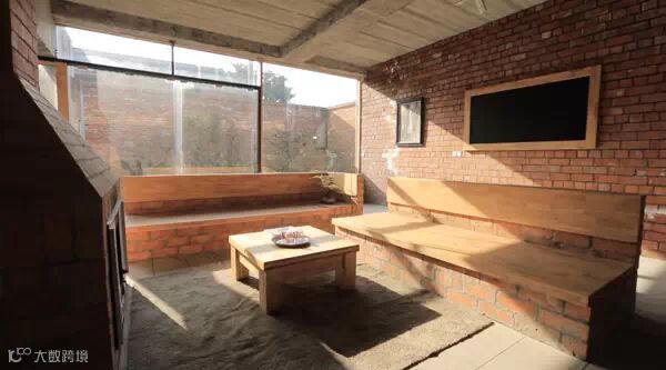 客厅的沙发也并非松软舒适,而是用坚硬裸露的红砖砌成
