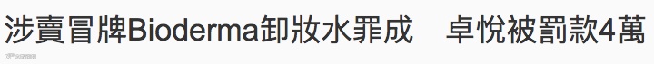 大家熟悉的香港连锁化妆用品店卓悦,旗下两间分别位于铜锣湾及湾仔的分店,2015年被查获出售冒牌Bioderma卸妆水,遭海关查获,卓悦被判罚4万元。