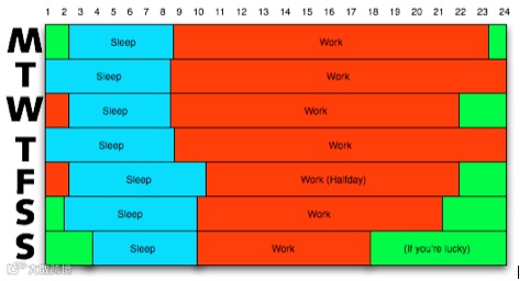 假如一周只工作五天,那么就意味着每天工作16到20个小时,即便是每周工作7天(周六日也不休息!),平均下来每天也要工作11到14个小时。