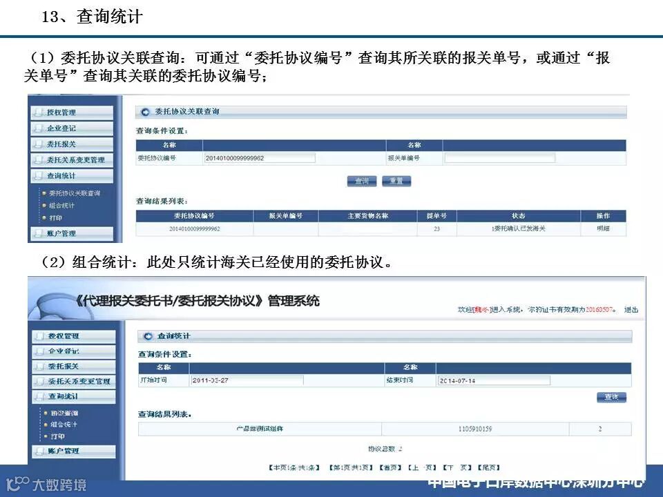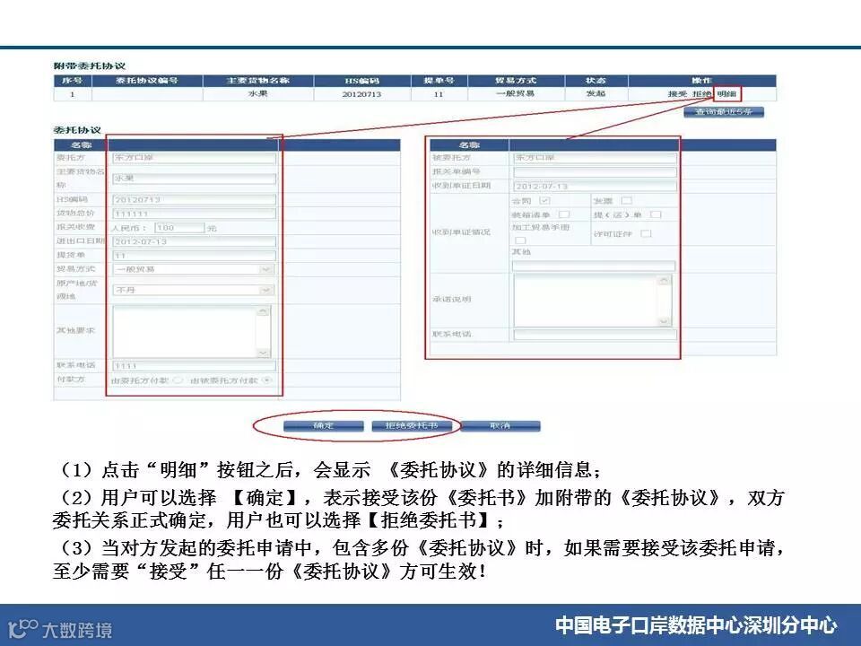 (3)海关H2010系统根据报关单中的委托协议编号,查询该委托协议的电子数据中,进出口货物收发货人(委托方)、申报单位(被委托方),是否与报关单中的经营、申报单位一致。如一致,则视为通过。如果海关H2010系统没有该委托协议号或委托协议编号被重复使用,会被退单。