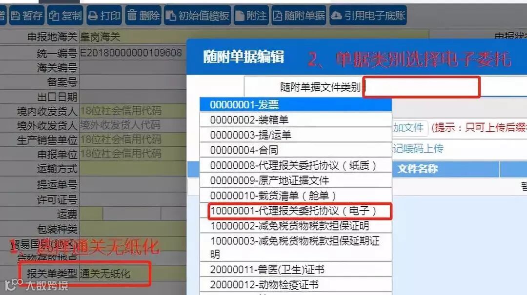 ▲在单一窗口申报时,随附单据选择电子委托协议