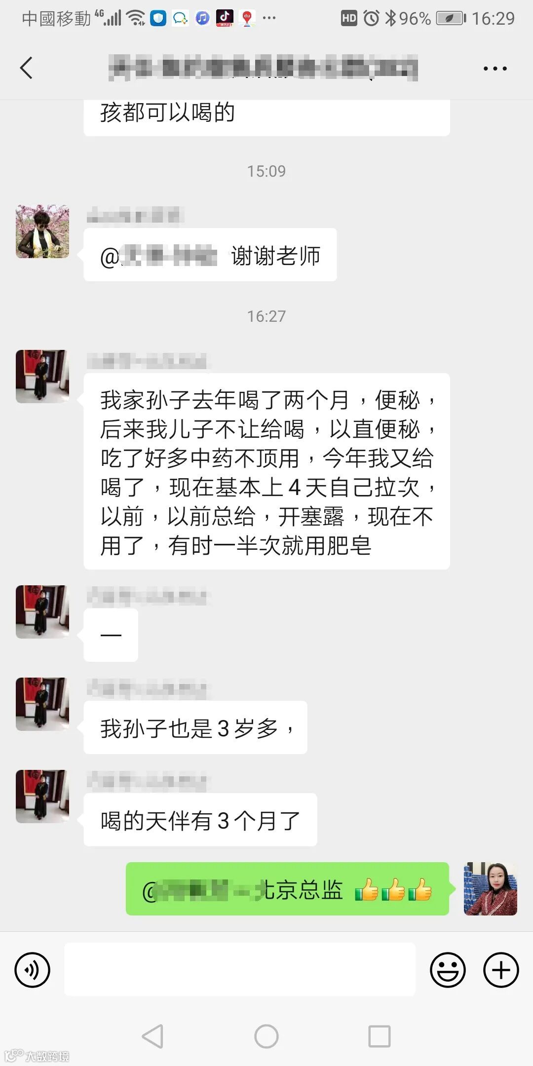 Q:我家孙子去年喝了两个月,便秘,后来我儿子不让给喝,一直便秘,吃了好多中药不顶用,今年又喝了,现在基本上4天自己拉次,以前,以前总给开塞露,现在不用了,有时一半次就用肥皂。