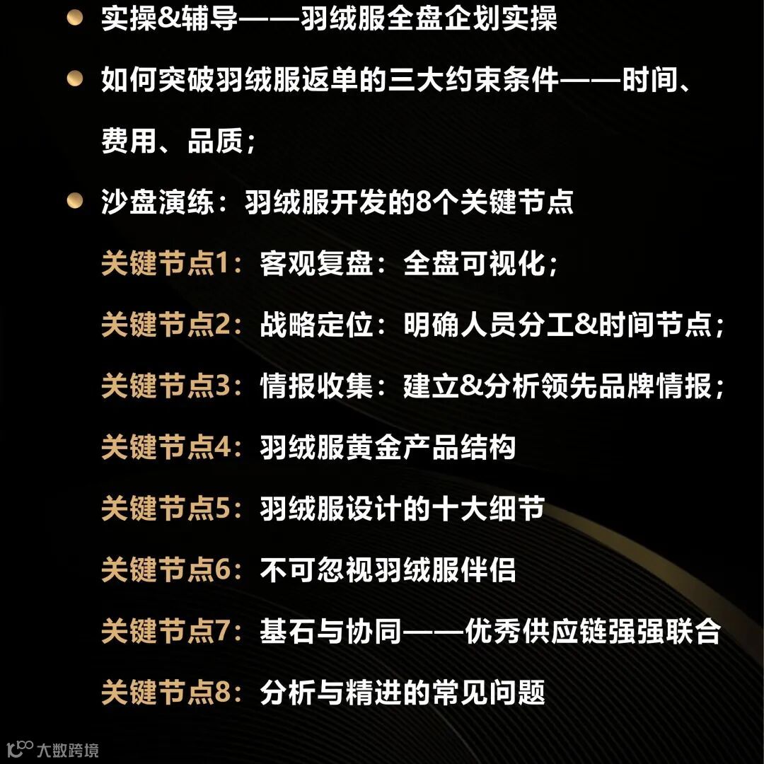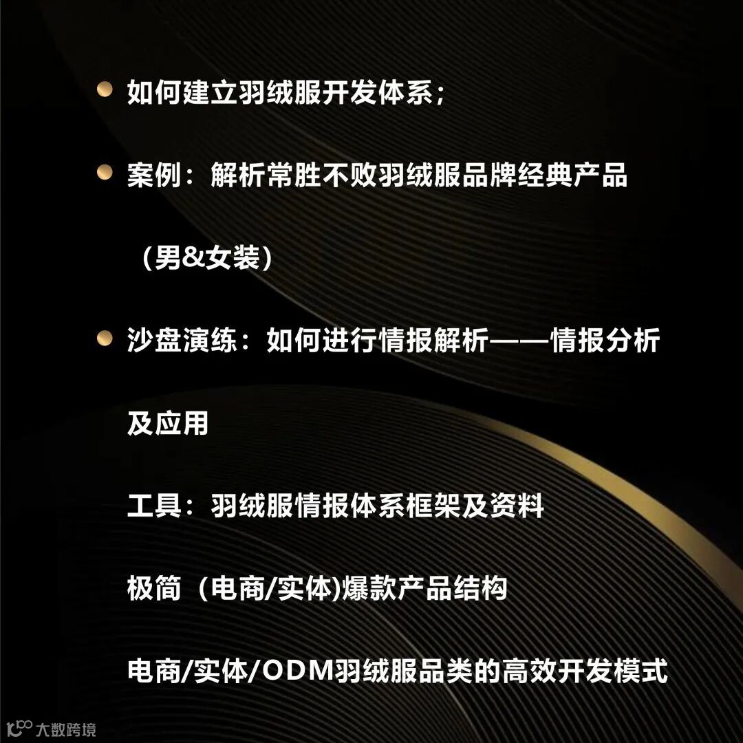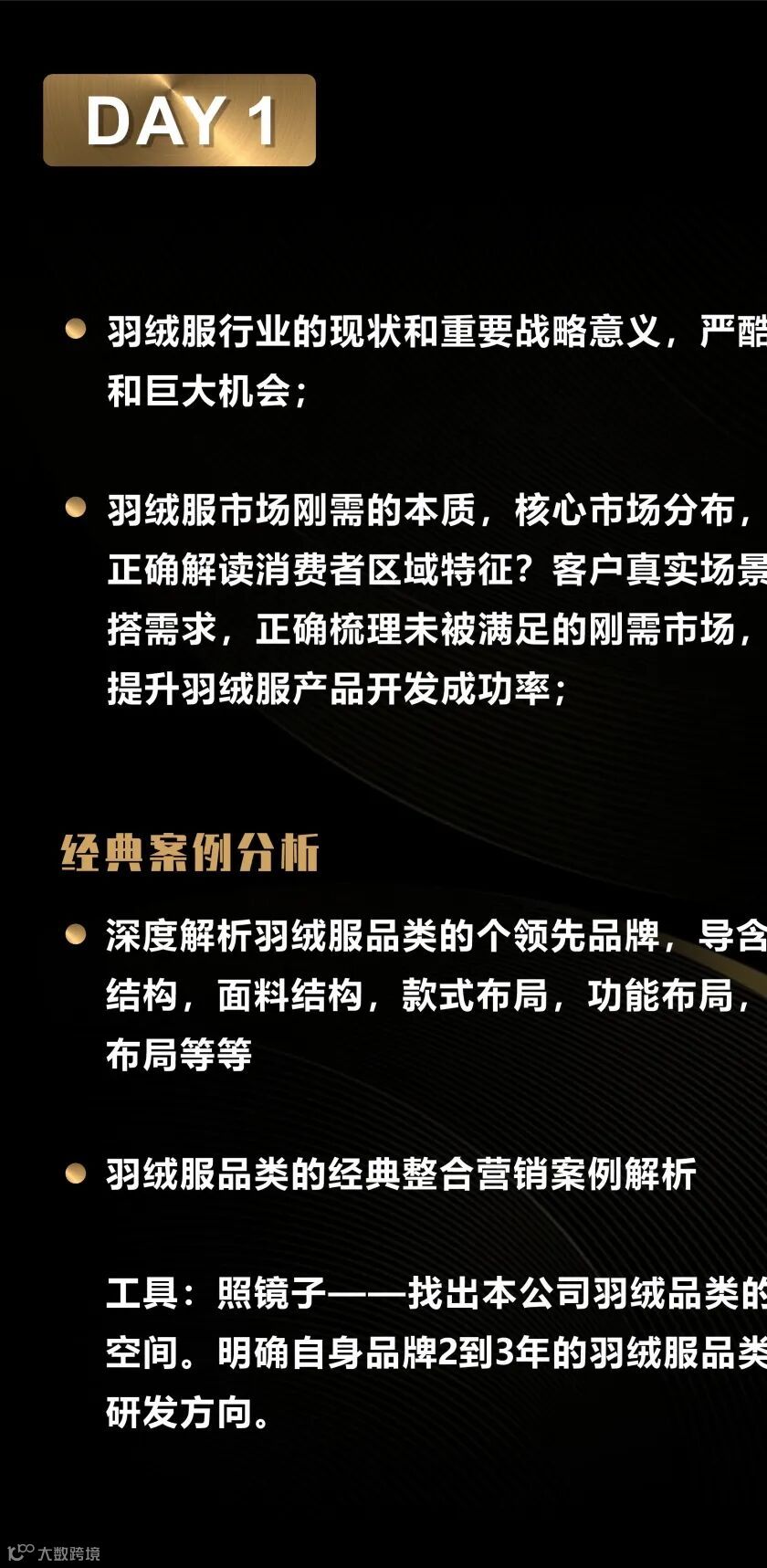 l 不同业态(实体品牌,线下买手店,电商,直播,羽绒服面料/绒/款供应商)的企业能精准的掌握羽绒服品类的最实用&最精干产品企划及设计开发模式。