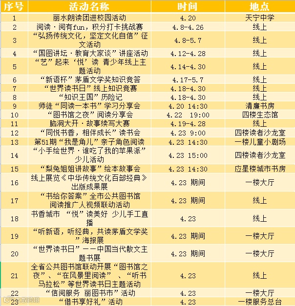 4月23日,是第27个“世界读书日”,全省各地纷纷推出多种形式的线上、线下阅读活动,那就让我们一起开启这段阅读旅程吧!