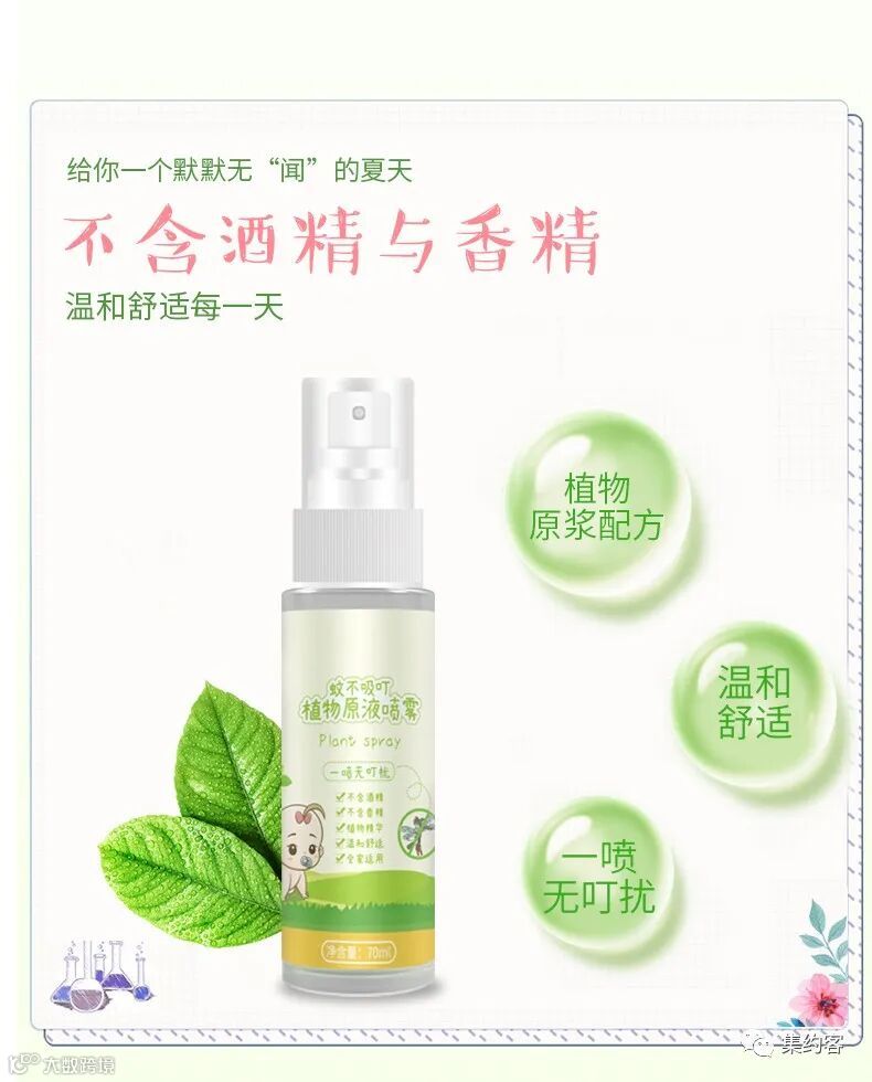 不含有酒精成分,不含有防腐剂,针对婴幼儿细嫩的皮肤不形成皮肤危害,并起到预防蚊虫叮咬的保护作用。