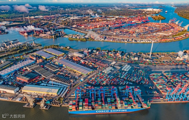 汉堡港历来是中国货物通往欧洲的一个重要枢纽和集散地。汉堡港如今吞吐量的三分之一都来自于中欧贸易往来,即每三个在汉堡港的集装箱中就有一个是来自或去往中国的。汉堡港最新公布的集装箱吞吐量数据显示,2022年上半年汉堡港的集装箱吞吐量达440万标准箱(TEU),其中在对华贸易方面,汉堡港共处理了130万标准箱,同比增长5.8%,在汉堡港主要贸易伙伴中排名第一,美国(29.1万TEU)和新加坡(21.8万TEU)分别位居第二、第三。
