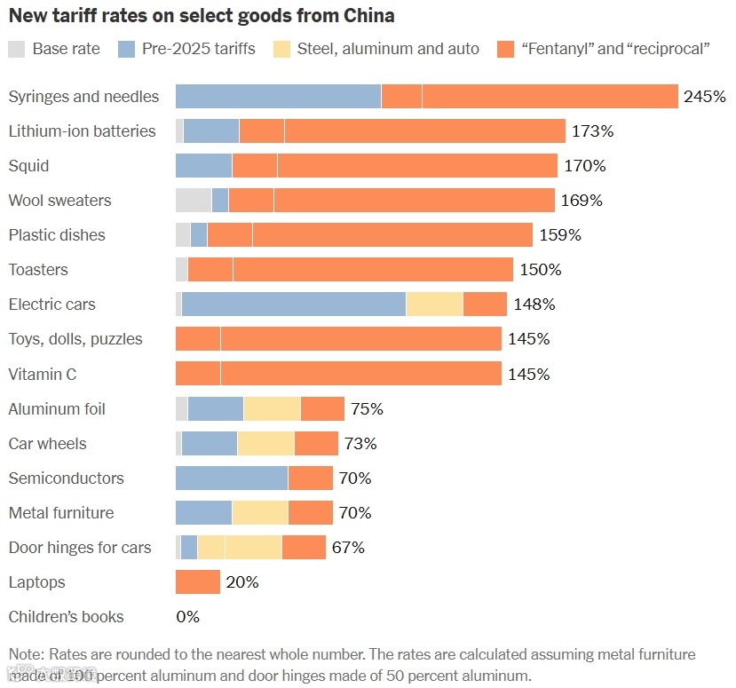 另据了解,美国白宫今天发布的简报,文中内容:“China now faces up to a 245% tariff on imports to the United States as a result of its retaliatory actions。 ”这句话的意思应是,中国因实施反制措施,目前对美出口商品面临高达245%的关税。并不是所有的产品加征到245%。