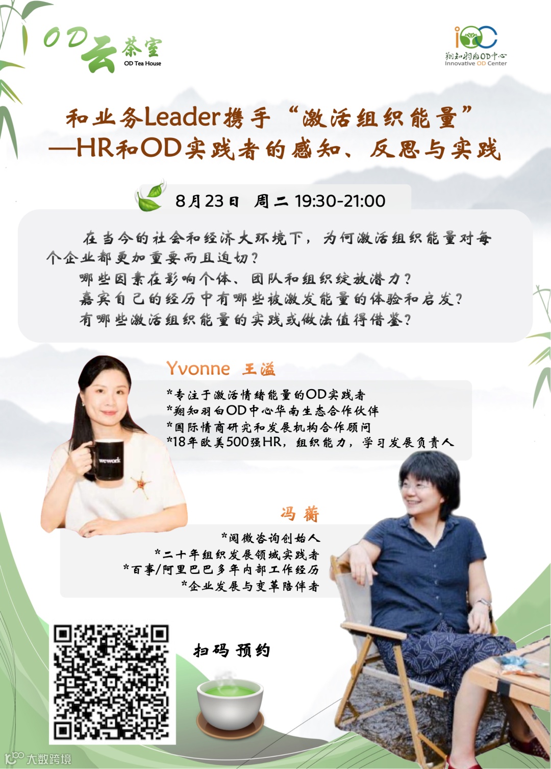 本期的云茶室,我们邀来两位经验丰富、个性鲜明的HR/OD实践者做客,她们是: