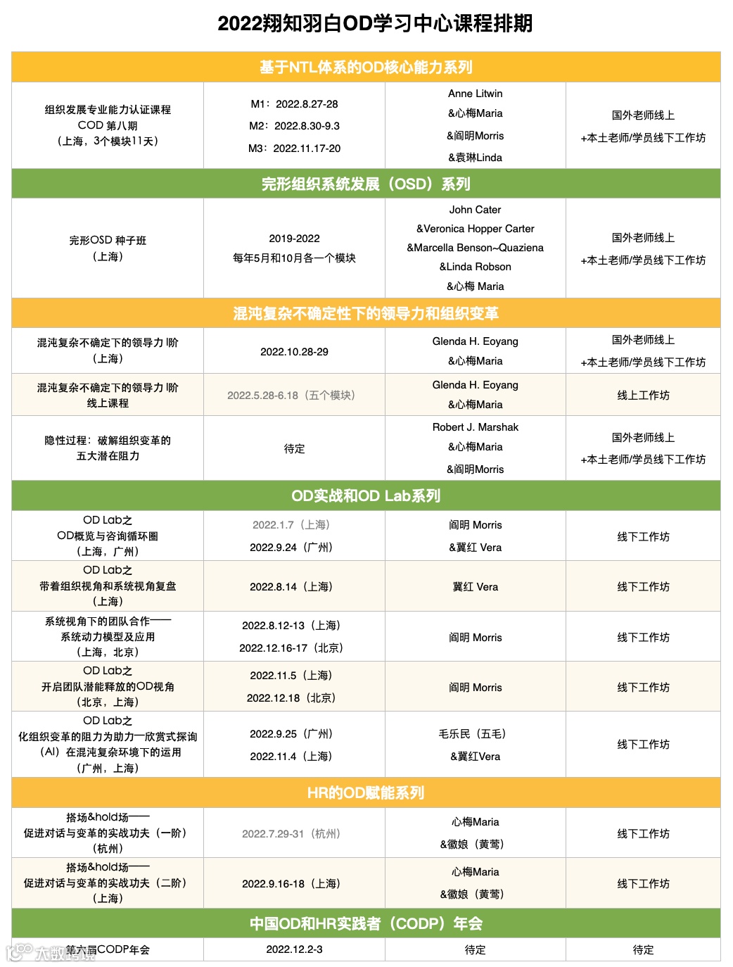 (*受疫情影响,线下课程时间有所调整,以下为2022下半年翔知羽白最新课程排期,欢迎感兴趣的小伙伴持续关注。)