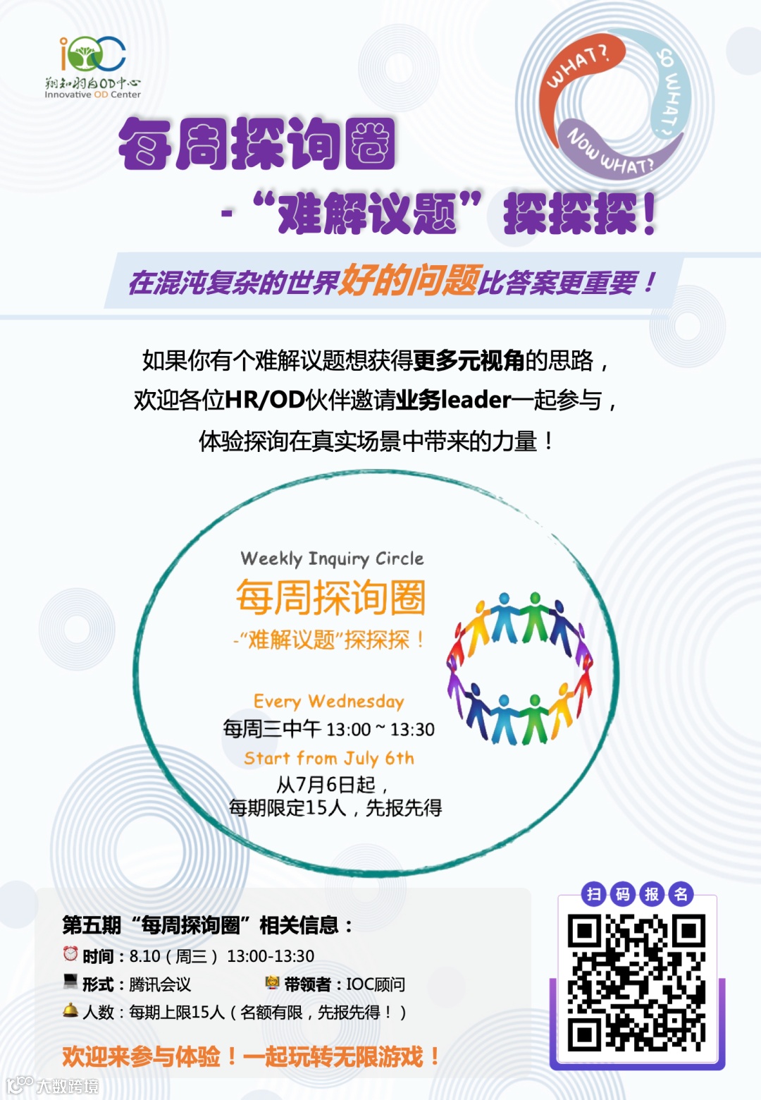 欢迎各位HR/OD伙伴邀请业务leader一起参与,体验探询在真实场景中带来的力量!