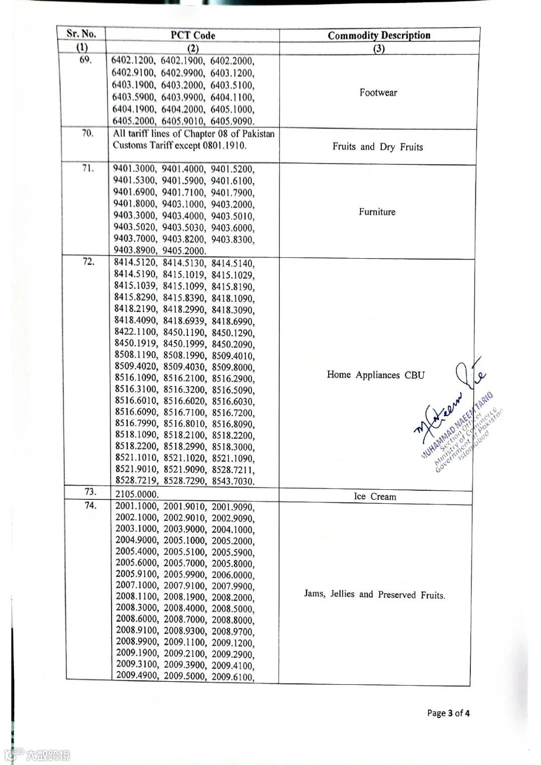 近期出货到巴基斯坦的朋友,请查询清单,确认产品是否遭禁止。如果产品在这份清单上,请注意,根据巴基斯坦进出口商务部的补充说明:进口禁令将不适用于禁令决定前签发的提单(B/L)或信用证(L/C)。