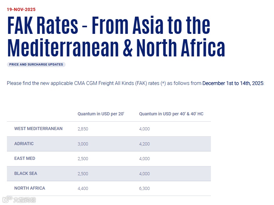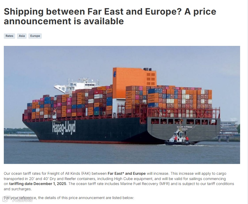 多家船公司已开始宣布新一轮12月的运价调整计划。MSC、达飞、赫伯罗特、马士基等多家船公司继续调整部分航线的运费,涉及欧洲、地中海、非洲航线等。