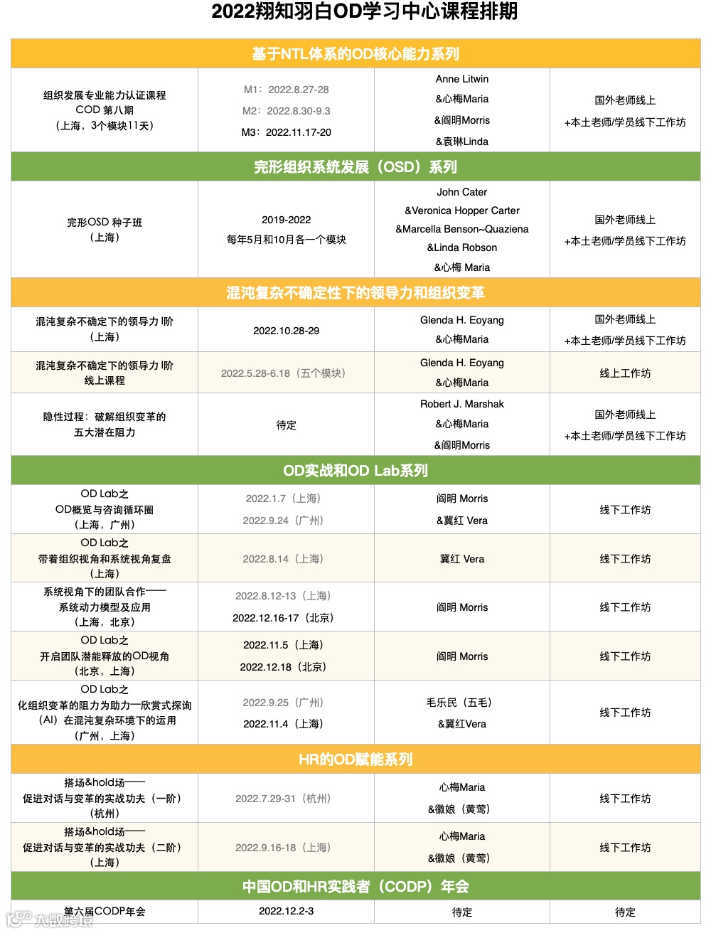 (*受疫情影响,线下课程时间有所调整,以下为2022下半年翔知羽白最新课程排期,欢迎感兴趣的小伙伴持续关注。)