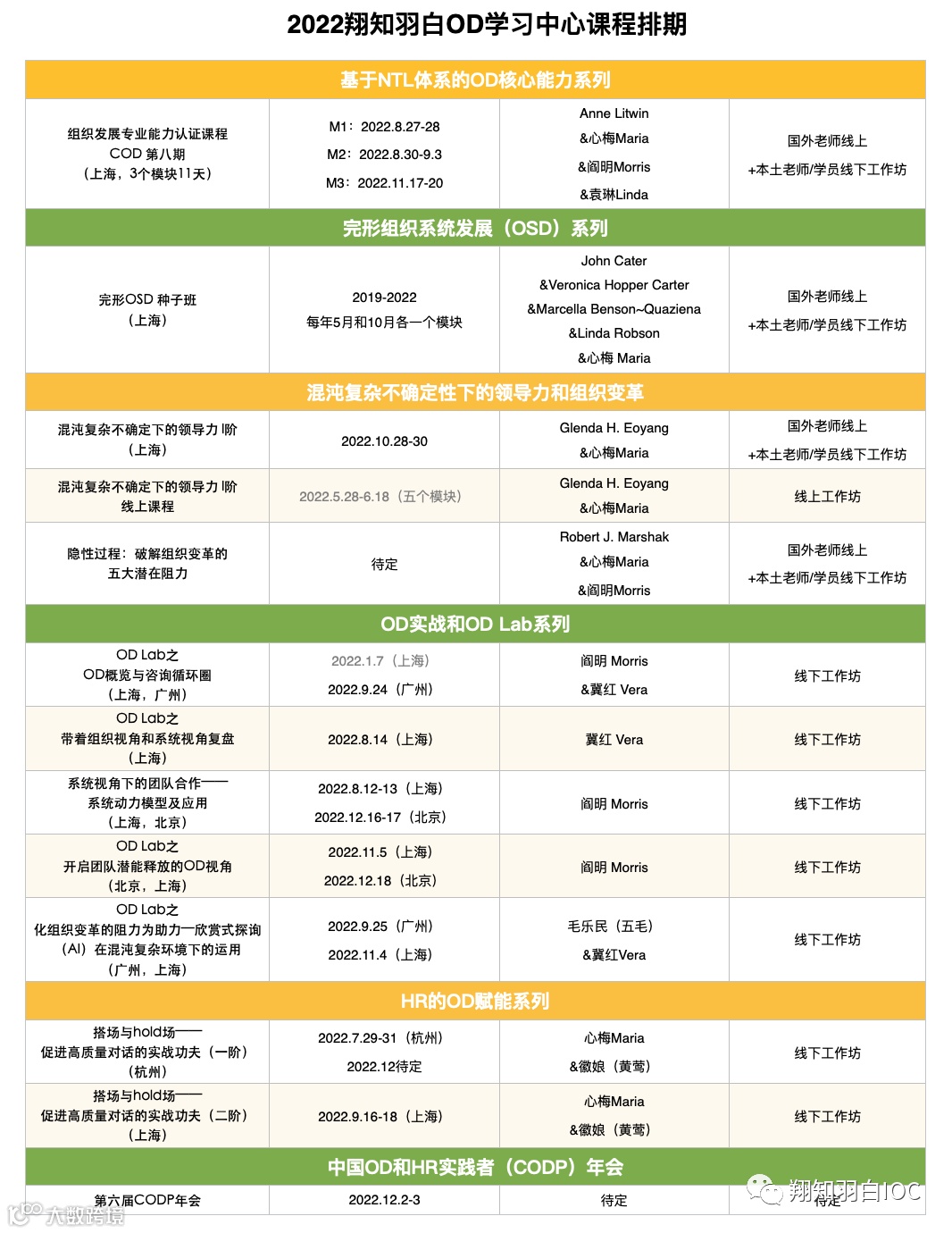 (*受疫情影响,线下课程时间有所调整,以下为2022下半年翔知羽白最新课程排期,欢迎感兴趣的小伙伴持续关注。)
