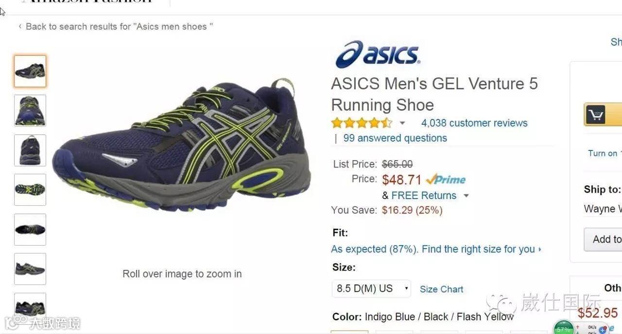 Asics men’s venture 5 running shoe Asics 男士减震跑鞋