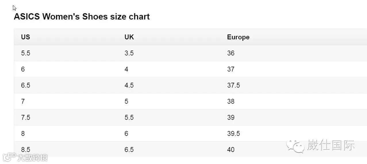 #由于不同品牌尺码有差异,为你附上Asics,Nike, Adidas男女尺码#