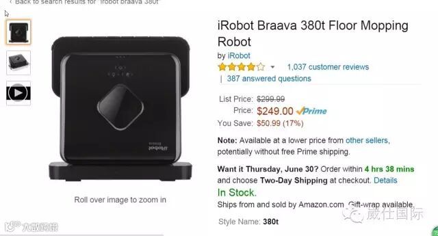 IROBOT BRAAVA 380T 擦地机器人原价$299,现价$249