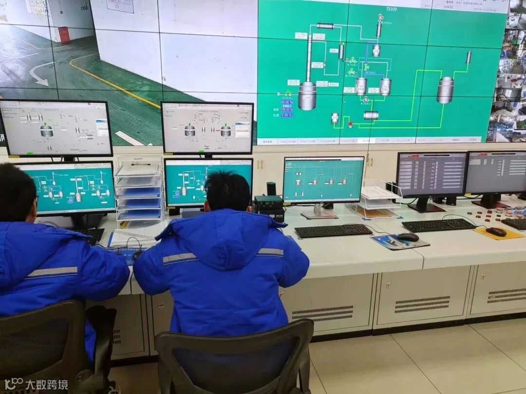 生产部总控制中心的大屏幕上清晰显示着生产运行状态和各车间操作区,中控室各岗位人员正专注地看着屏幕上的数据显示,并实时记录现场所有的生产状态及数值;生产管理人员深入一线,巡查生产车间,询问产品生产进度,查看反应釜里的原料加工状况和车间操作记录……