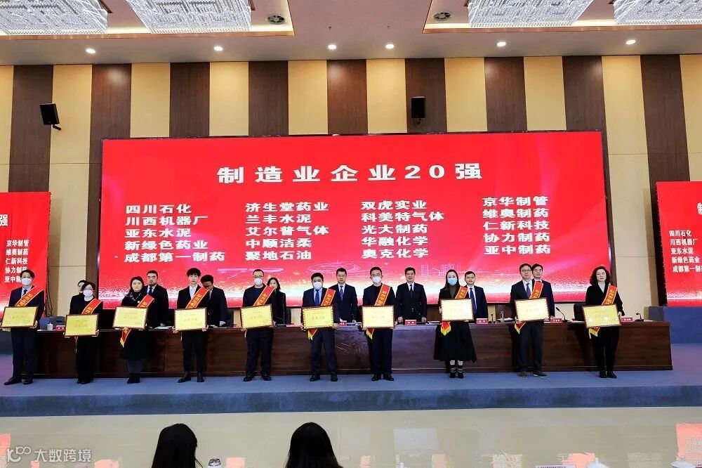 1月12日上午,彭州市推进制造强市建设大会隆重举行,成都亚中生物制药有限责任公司被中共彭州市委、彭州市人民政府授予“彭州市制造业企业20强”荣誉称号。